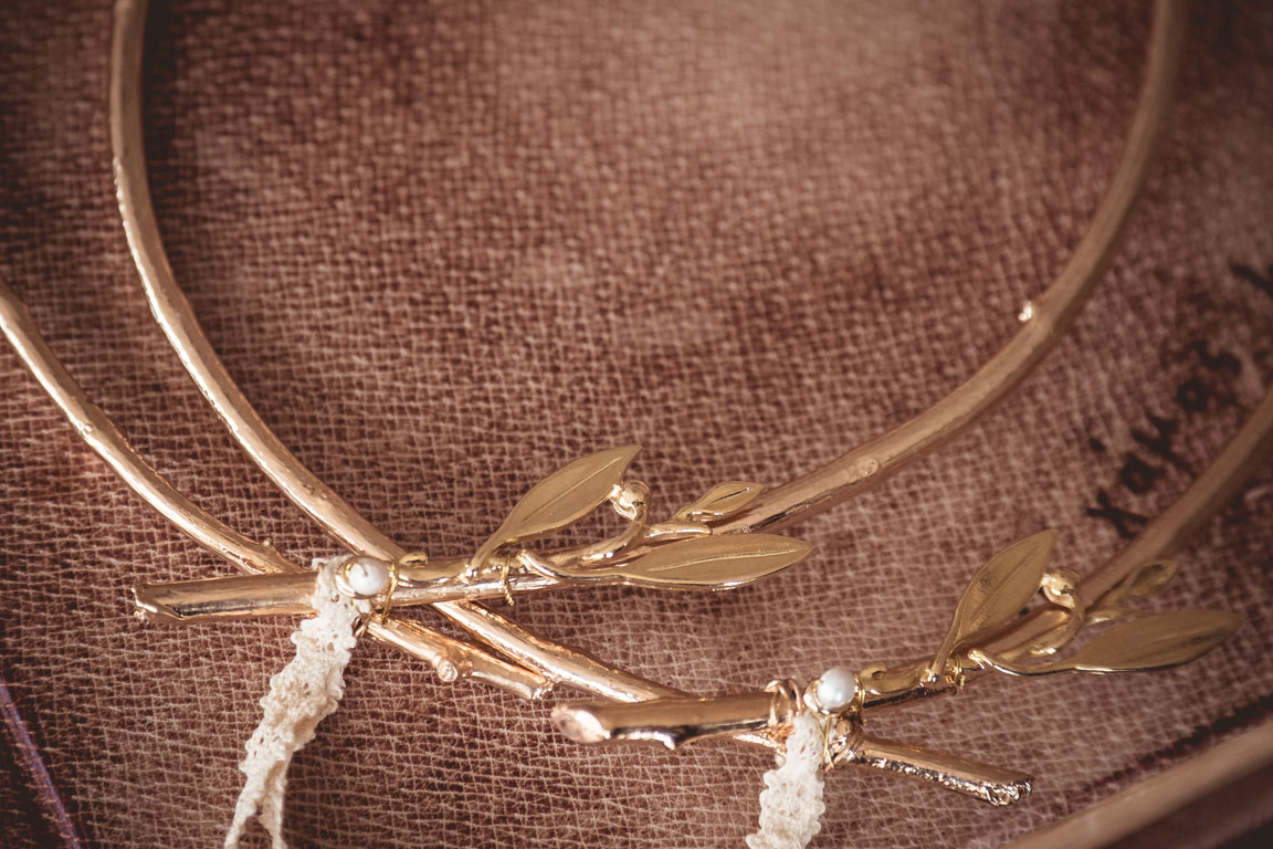 Τα στέφανα συνοδεύονται από πολυτελές κουτί και δύο καρφίτσες, γαμπρού και κουμπάρου.