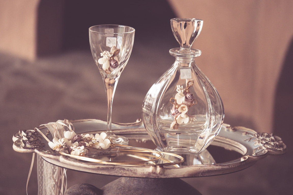 Σετ γάμου με ρομαντική διακόσμηση για να ταιριάζει με τα στέφανα της επιλογής σας.