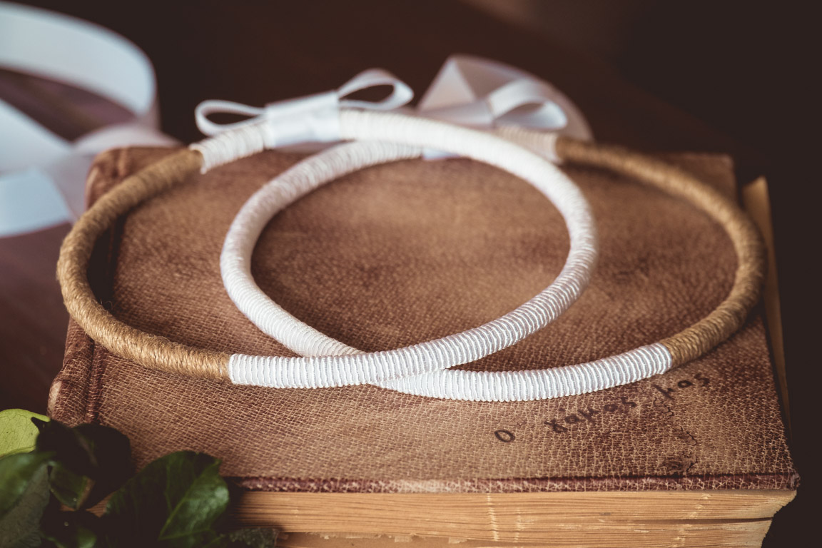 Τα στέφανα συνοδεύονται από πολυτελές κουτί και δύο καρφίτσες, γαμπρού και κουμπάρου.