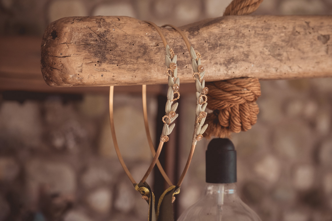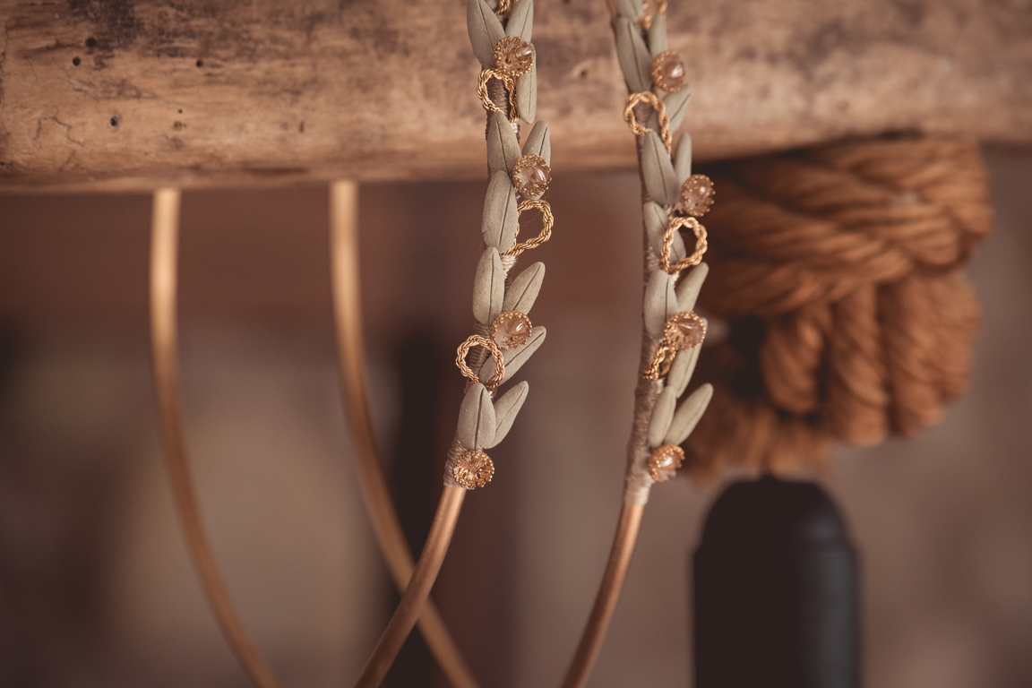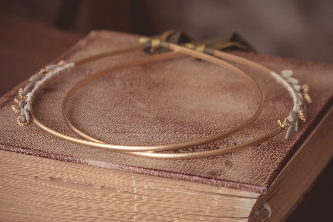 36γ. Στέφανα γάμου επίχρυσα με φύλλα πορσελάνης