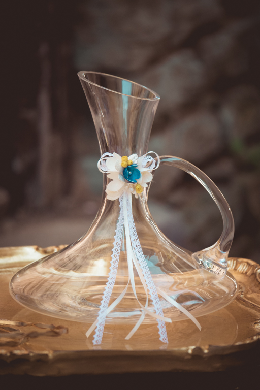 (Δίσκος Φλωρεντιανός ξύλινος με διαστάσεις 56×44,5, η καράφα και το ποτήρι είναι κρυστάλλινα).